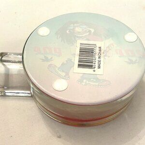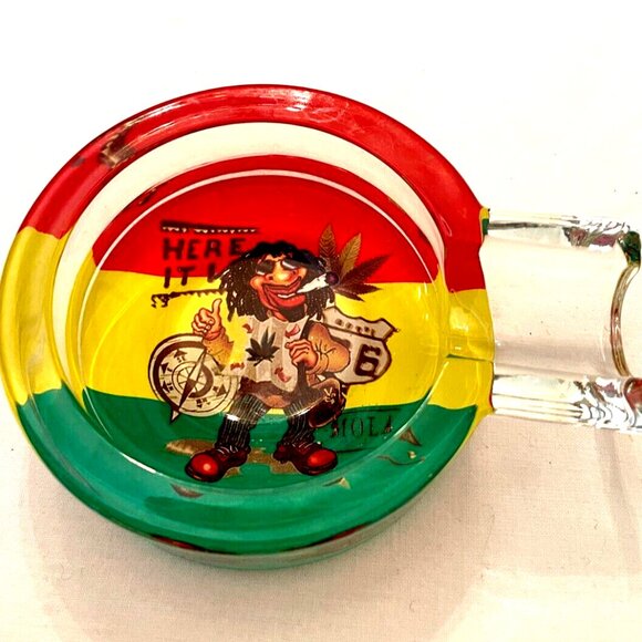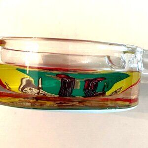 Cannabis Glass Ashtray Cartoon Man Figure round 3 1/2" wide