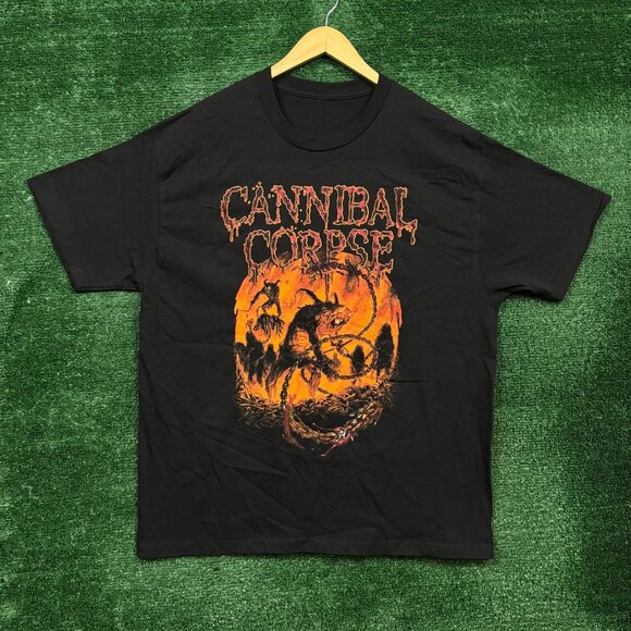 Cannibal Corpse Scourge of Iron Death Metal Band T-Shirt Size Extra Large measures 24 inches pit to pit 29 inches long Amazing shirt with graphics on both sides of the t-shirt perfect for fans of the legendary band Cannibal Corpse New overstock in great condition