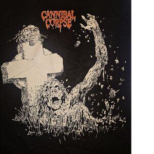 Black T-shirt from influential death metallers Cannibal Corpse with Zombie Grave desig, printed on a comfortable, standard-fitting black t-shirt. 100% heavy cotton.
