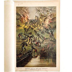 Cannibals Battle At War Du Chaillu Lithograph 1887 Victorian Art Print DWEE19