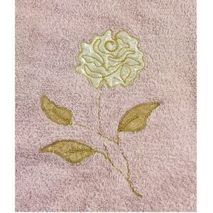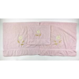 Cannon Bath Body Hand Towel Set Vintage Pink Floral Appliqué Gold Rose USA Flowe