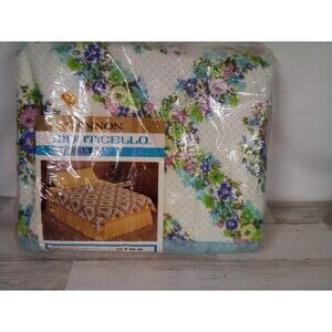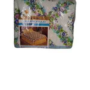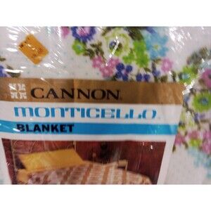The product is a vintage Cannon blanket in original packaging, featuring a floral pattern in size 72x90 inches, making it a double-sized blanket. This collectible item is a rare find for those who appreciate classic style and original reproduction pieces in the realm of vintage linens and textiles. Perfect for adding a touch of nostalgia and charm to any bedroom or collection.