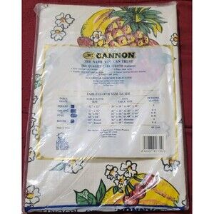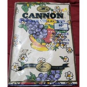 Cannon Vinyl Flannel Backing Tablecloth 60" Round Fruits NEW Vintage
