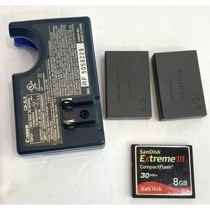 Comes with SanDisk Extreme III Compact Flash 8GB and two batteries