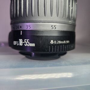Canon EF-S 18-55mm f/3.5-5.6 zoom lens. Standard Canon kit lens compatible with Canon Rebel and other APS-C EOS digital cameras.