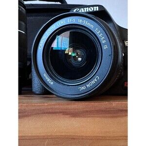 Canon EOS Rebel T1i body, 18-55mm zoom lens, 55-250mm zoom lens, battery + battery charger, and bag. All original paperwork included.
