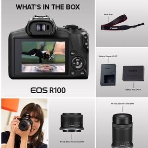 Canon EOS R100 Mirrorless Camera RF-S18-45mm F4.5-6.3 is STM & RF-S55-210mm F5-7.1 is STM Lens Kit, 24.1 Megapixel CMOS (APS-C) Sensor, 4K Video, RF Mount, Black