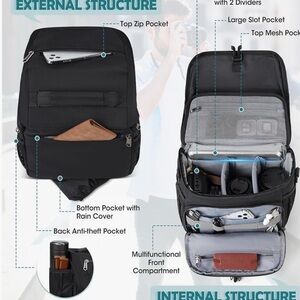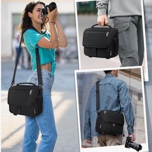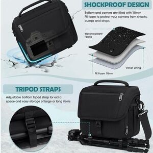 Includes RAINSMORE Camera Bag, DSLR/SLR/Mirrorless Camera Case with Tripod Holder Waterproof Camera Sling Bag Crossbody Camera Bags for Photographers with Rain Cover for Canon/Nikon/Sony/Fuji, Black