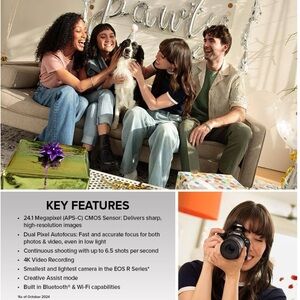 Smallest and lightest camera body in the EOS R series1 built for excellent mobility
