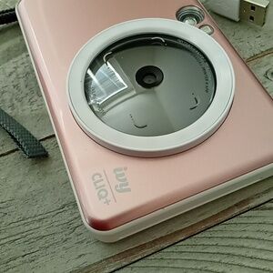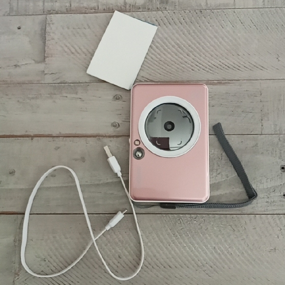 Rose gold color. comes w a stack of printer photo paper & USB charger. purchased at Best buy brand new. used a few times. excellent photos. super fun & easy for kids to operate 🩷