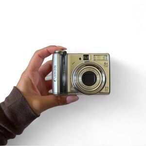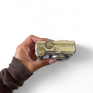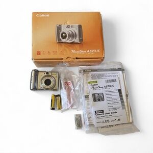 Comes with everything pictured (camera, box, strap, AV cord, extra batteries & user manual)
