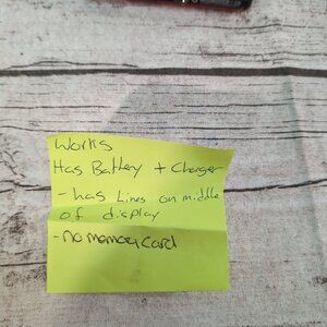 Condition: Tested and working. Camera powers on, lens and flash function normally. Screen has lines through the middle (see photos). No memory card included.