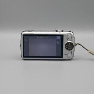 Sleek pocket cam by Canon from 2009 in a silver metal finish. Featuring a 12.1MP CCD sensor, it delivers crisp, nostalgic photos with Canon’s natural color tones. The 5x optical zoom lens offers flexibility for wide to telephoto shots, while optical image stabilization keeps images sharp. This was Canon’s first touch-screen PowerShot, making it a collectible piece of late-2000s digicam history.