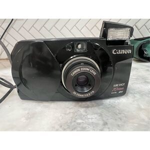 Canon Sure Shot 70 Zoom 35mm Point & Shoot Film Camera in great working condition! While not tested with new film, all other functions, including zoom, have been checked and work smoothly. This camera is perfect for collectors or anyone diving into the world of film photography. Photos showcase its operation and capture any imperfections for transparency, though overall, it’s a beautiful piece. Compact and easy to use, it’s great for capturing timeless memories. Despite minor cosmetic flaws, this camera is ready for a new owner to enjoy. Don’t miss out—review all pictures for details!
