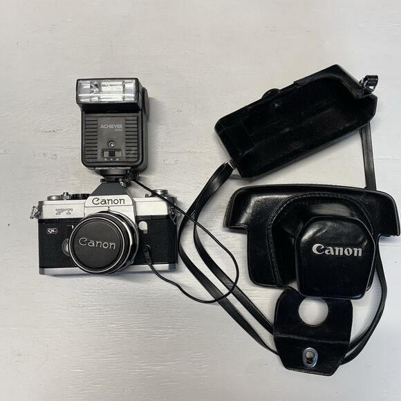 NOTE CAMERA WAS NOT TESTED SELLING AS IS The Canon TL QL 35mm Film SLR Camera with FL 50mm 1:1.8 Lens is a classic and reliable option for film photography enthusiasts. This camera, while not tested and sold as "Light" condition, is known for its durability and high-quality performance. With its trusted Canon brand, SLR design, and 35mm format, this camera is sure to deliver stunning images with the added benefit of a 50mm lens for versatile shooting options. Whether you're a beginner or a seasoned photographer, this Canon TL QL camera is a valuable choice for capturing timeless moments in crisp detail.