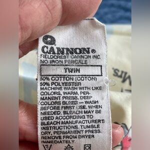 Vintage 1990 Beatrix Potter Alphabet Storybook Characters Twin Sheet three piece set from Cannon bedding, featuring various characters such as Tom Kitten, Jeremy Fisher, Nutkin, and Xarifa, alongside the alphabet. This is in good vintage condition. Nice clean set.
