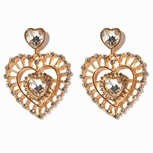 Gold heart shape Crystal Jewel drop earrings with rhinestone accents. Post back. New with tags!
