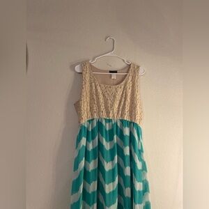 Cantata women’s Sleeveless Lace Top Maxi Dress teal and cream size 2XL