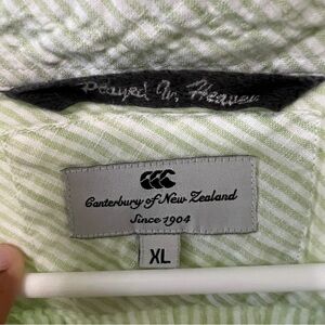 Canterbury of New Zealand Men’s Linen Button Down Shirt White/Green Striped XL