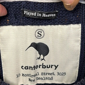 Canterbury of New Zealand Mens Navy blue sweater Sm cable knit soft emblem warm