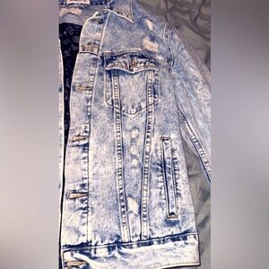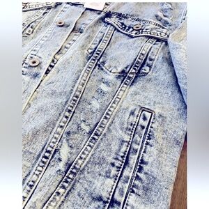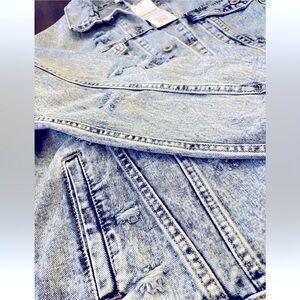 Canton Walker Women's acid washed distressed jean jacket with black lace back L