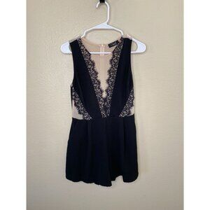 Canuto Womens Black Sleeveless Romper Medium polyester lace zipper shorts