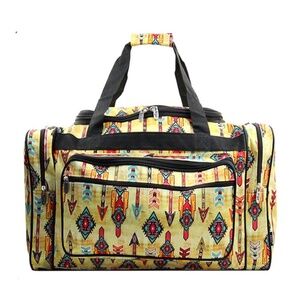 This canvas duffel bag by Fleurish Jewelry is the ultimate travel companion. Measuring 20 inches in length, it provides ample room for all your essentials, while its sleek black color and tribal arrow design add a touch of style. Made from durable canvas, this bag is built to withstand everyday wear and tear. Its unisex design makes it a versatile choice for any traveler, whether you’re on a business trip or vacation. Featuring a top zipper, front and back zipper pockets, and additional pockets on each end, this bag offers both convenience and functionality. The double carry handle with Velcro and adjustable shoulder strap ensure comfort while on the go. Ready for monogramming, it’s a personalized option too. Add this stylish, functional duffel bag to your travel gear today!