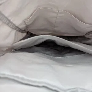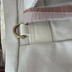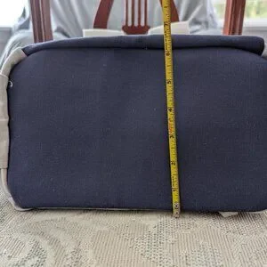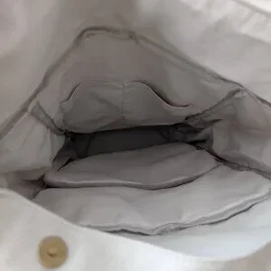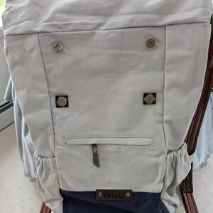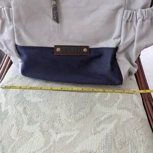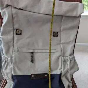 New in the bag with beige canvas material, a large floppy top flap, and blue canvas bottom. Has plenty of storage pockets and a padded computer pocket. This is a promotional item and has the Western Goverors University (WGU) logo.