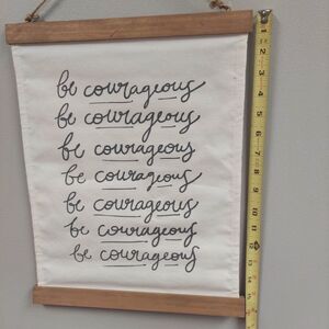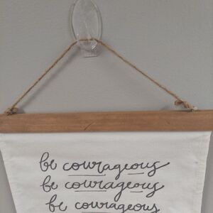 Canvas Banner "Be Courageous", 12" x 16" Wall Art, Jute, Wood, Office Home Decor