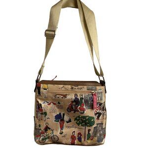 Canvas City Scene Crossbody Bag – Adjustable Strap & Zipper Pockets