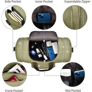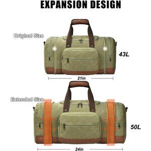 🧿Expandable Design:The Canvas Travel Duffel Bag measures (L) 21 x (W) 12 x (H) 10.5 inches and can be extended to 24 inches with two side zippers. Large enough to store 5 or 7 days worth of necessities.The travel bag can be used as a carry-on flight bag.