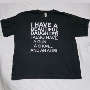 Canvas Funny Dad Tee ✦ Black 4XL Graphic Shirt ✦ Daughter Gun Shovel Alibi EUC