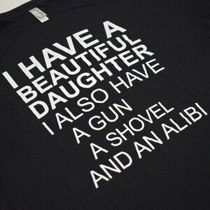 🖤 Bold white graphic: “I Have a Beautiful Daughter, Gun, Shovel & an Alibi”