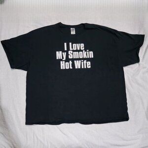 Featuring crisp white lettering that declares “I Love My Smokin’ Hot Wife,” it’s crafted in soft ultra cotton for relaxed comfort ✦ unmistakable charm.