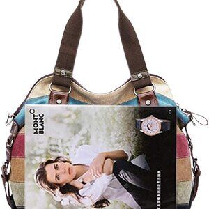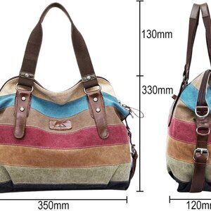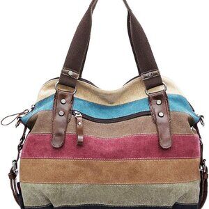 Canvas Handbag Multi-Color Striped Lattice Cross Body Shoulder Purse Bag Tote-Ha