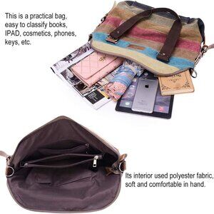 Welcome to store,have a good time! devote ourselves to creating fashion and practical bags, with high quality and good service providing a good experience for the customers. If you have any problem,you can contact our customer service,we support return and exchange items. Feature: Durable, can be washed, light, multi-color, fashion bag for women It has a lot of storage area. There are many compartments pertaining to every needs and the bag is designed very well. You can store small things to bigger things in different parts of the bag and they will be easy to segregate and find. It works great in both casual and more professional settings. Like for working, short traveling, daily life. Perfect for everyday using. It can hold your iPad, cell