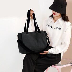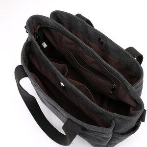 Features: Crafted from durable 16 oz canvas with contrast stitching, this oversized tote features three roomy main compartments plus multiple smaller pockets, perfect for keeping everything sorted—laptop, books, water bottle, or daily essentials. The adjustable long strap means you can wear it as a shoulder bag, crossbody, or even a tote. The sturdy zipper and magnetic snap closure keep your belongings secure, while the cotton lining adds a soft touch.