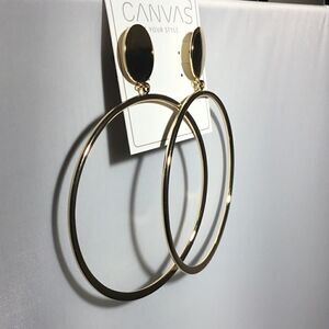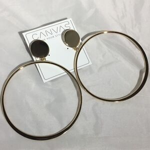 Canvas Large Gold Tone Post Hoop Earrings (G1)