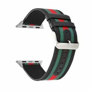 This premium stripe canvas leather Apple Watch band is an ideal luxury leather band strap for both women and men! The red and green canvas stripe combination is minimal and subtle for everyday use while still giving your a lot of style!