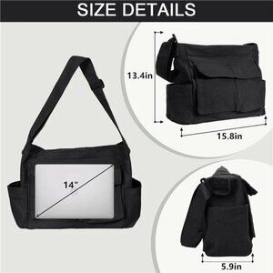 This messenger bag boasts a spacious size of 15.8" x 5.9" x 13.4", making it the perfect option for comfortably carrying your laptop, tablet, mobile phone, umbrella, cosmetics, notebook, wallet, and more.