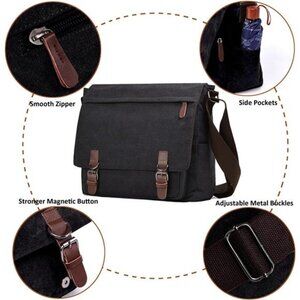 Canvas MessengerBag for Men Women,Travel Satchel Shoulderbag 15.6Inch Laptop Bag
