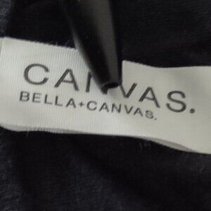 Canvas “My rights don’t end where your feelings begin” black tee, size XL. “Don’t tread on me” with picture of rattlesnake in center on yellow background. 100% cotton. Assembled in Nicaragua of US components. Machine wash warm inside out; tumble dry low. RN 87370. Approximate measurements: Across shoulders: 17"; underarm to underarm: 21" collar to hem: 29"; sleeve: 9.75". In good condition.