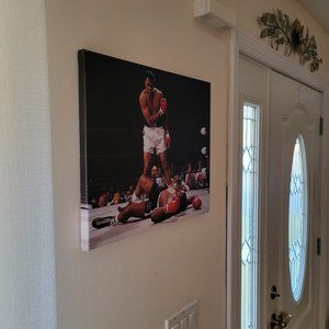 20"x16" Canvas Print wrapped on wood frame, Muhammad Ali stands over Sonny Liston after dropping Liston with a short hard right to the jaw, Great for Man Cave or Media Room