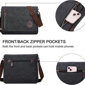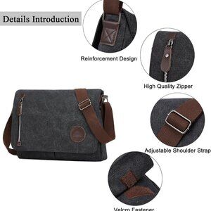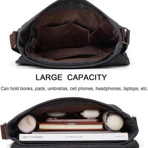 Canvas Satchel Messenger Bag for Men Women, Vintage Shoulder Crossbody 13.3" Lap