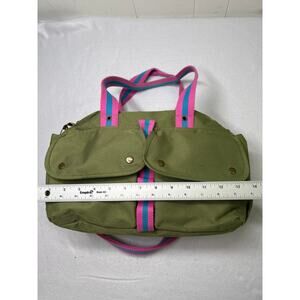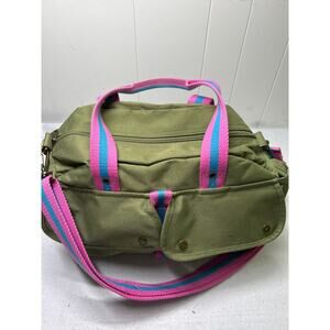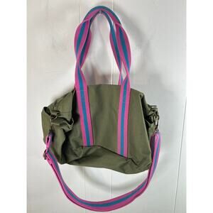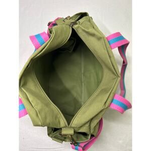 Canvas Shoulder handbag with pockets and adjustable shoulder strap in Army Green