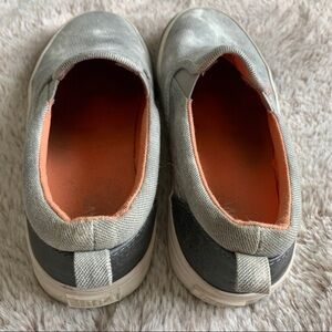 Canvas slip-on boys shoes in size 2 in gray and white tie dye effect, cushion footbed for comfort, gently worn.