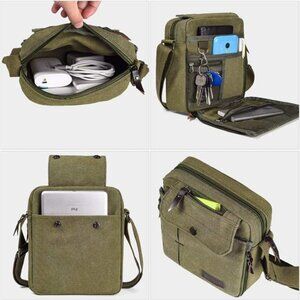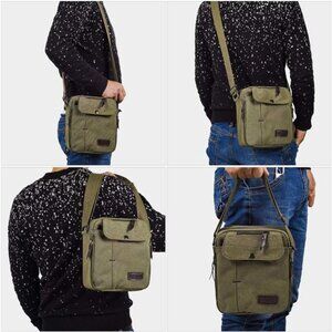 - Newest retro vintage style lightweight canvas travel leisure shoulder crossbody, Canvas Small Messenger Bag Casual Shoulder Bag Travel Crossbody Bags Multi-pocket Handbag This Multifunctional Canvas Traveling Bag is an all-round great bag for any use. Made of 100% cotton canvas and featuring multiple pockets, Enough space can to put down your iPad, mobile phone/phone battery charger, cables, sunglasses, book, notepad, keys, umbrella, wallet, various cards ,pens, and other stuffs. This canvas crossbody bag can be used as a handbag/crossbody bag when traveling. Shoulder strap can be adjusted/The detachable shoulder strap makes it easy to turn the messenger bag into a bag/shoulder bag that can be carried during hiking/running/cycling/sports and used as a sports storage bag. office, outdoor, traveling or other daily use. SIZE: 7.9 x 3.5 x 9.1 inch (L*W*H). Package Includes: 1 x Messenger Bag Washing instructions: * Washing with clean water in ordinary temperatures. * DO NOT washing with hot water. * placed ventilated place to dry. * Avoid prolonged sun exposure * Washing separately to avoid staining.