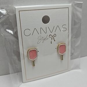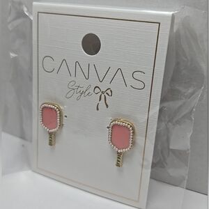 Canvas Style Pickleball Paddle Gold Tone Stud Earrings Bubblegum Pink Pearls New