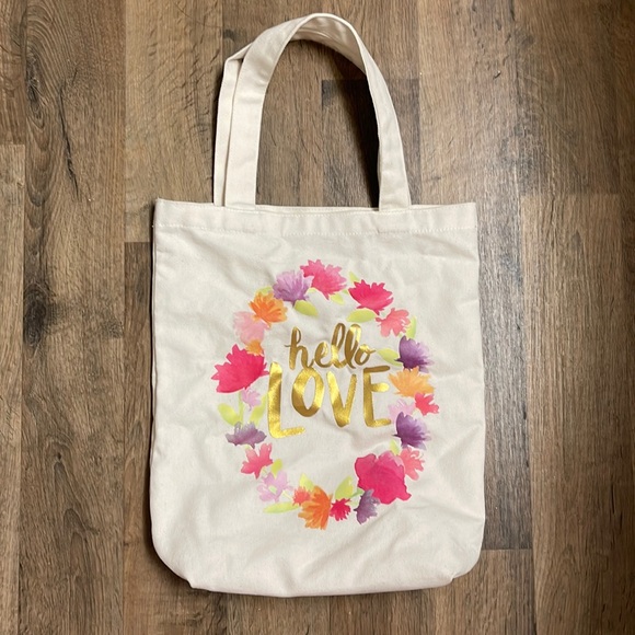 Hello Love Durable canvas tote bag great for on the go shopping or kids gift bag Like new Medium size