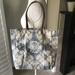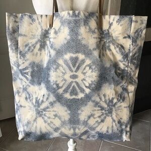 NEW without tags - Large Canvas Tote Bag Shopper Purse Muted Blue Tie Dye Look Boho with interior Pocket 100% Cotton. Nice quality, thick cotton canvas. Interior side pocket. Open top. Great for crafts, travel, etc. Goes great with denim.
